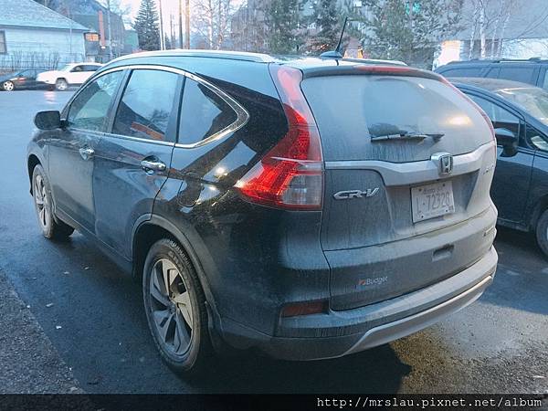 這裡呼籲大家,訂機票時順便跟航空公司ㄧ起預約租車,這個deal會是最好的。我們本來預約的小車不加保險前ㄧ天才US$13左右,非常的便宜。但請記得ㄧ下飛機直奔租車,我們在機場換錢+逗留浪費了一些時間,原本的小車沒有了,剩SUV, 一天多CAN$20,是還在接受範圍,而且在雪地裡開大車比較安全。